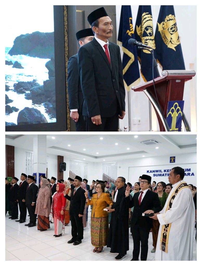 Acara yang berlangsung khidmat ini dihadiri oleh Kepala Kantor Wilayah (Kakanwil) Kemenkum Sumut, para pejabat tinggi pratama, serta anggota Majelis Pengawas Wilayah Notaris.