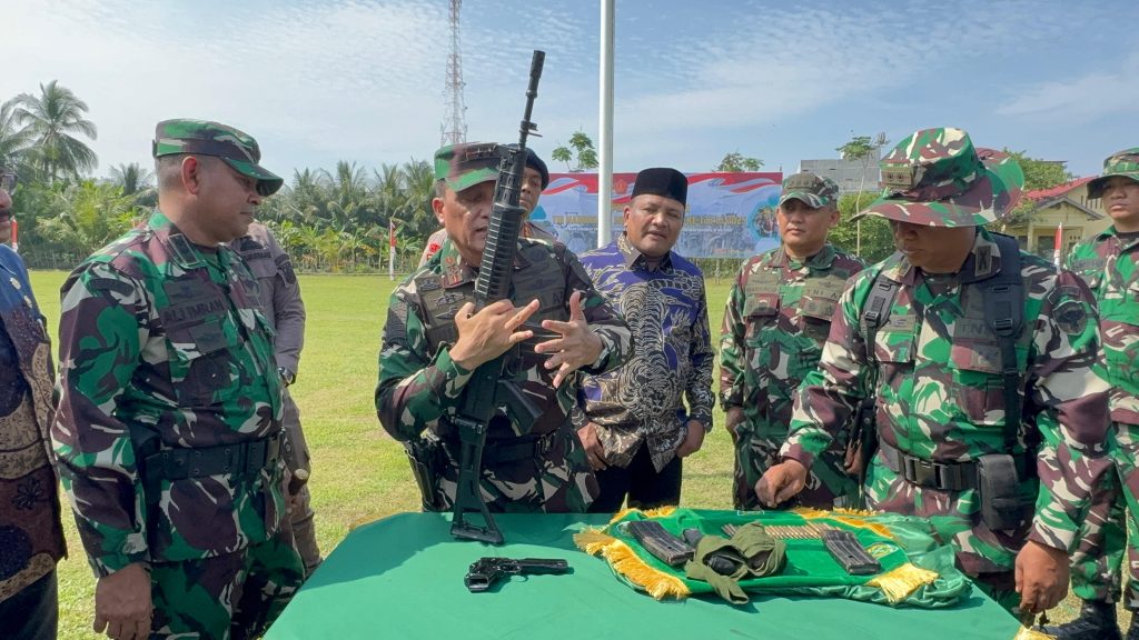Barang yang diserahkan meliputi satu pucuk senjata SS1 V1, tiga magazen, 30 butir amunisi kaliber 5.56 mm, satu pistol rakitan beserta satu magazen dan satu butir amunisi, serta dua granat tangan jenis nanas.