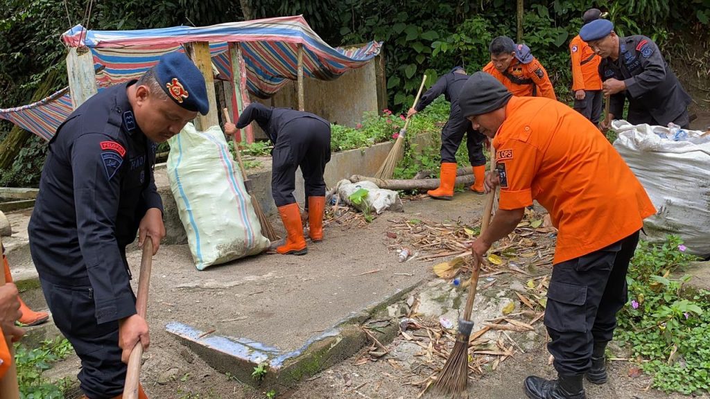 Aksi bersih-bersih tersebut dilakukan dengan penuh semangat, menciptakan suasana gotong royong yang harmonis dan penuh kebersamaan.