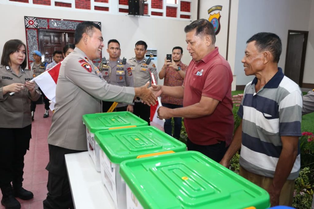 Foto: Kapolda Sumatera Utara (Sumut) Irjen Pol Whisnu Hermawan Februanto, menyalurkan beras Stabilisasi Pasokan dan Harga Pangan (SPHP) kepada warga.