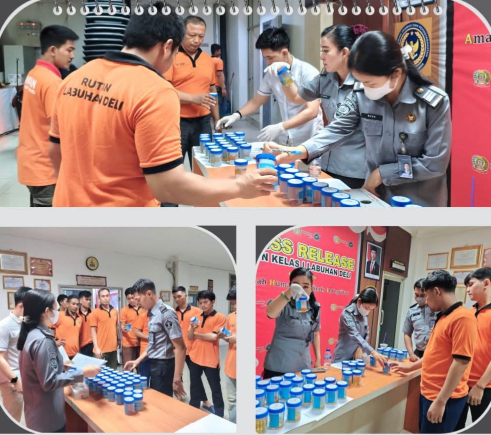 Tes tersebut dilakukan oleh tim medis Rutan Labuhan Deli sebagai bentuk pengawasan dan komitmen terhadap upaya pencegahan penyalahgunaan narkoba dilingkungan rutan.