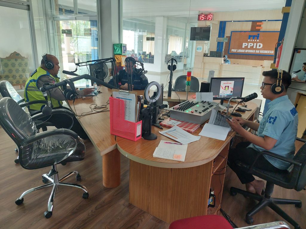 Acara yang mengangkat tema “Pentingnya Tertib Berlalu Lintas Sejak Usia Dini” menghadirkan narasumber Iptu Azwar, Kanit Kamsel Satlantas Polrestabes Medan, dengan dipandu presenter RRI Medan, Ricky Subandi.