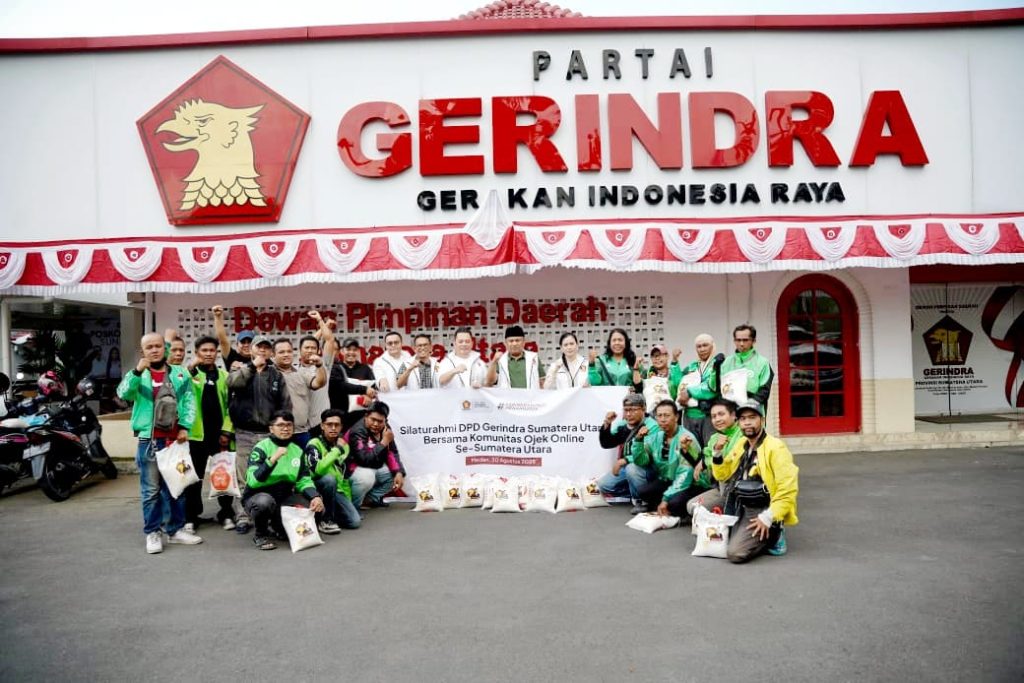 Medan, (Infokasus24.com) – Dewan Pimpinan Daerah (DPD) Partai Gerindra Sumatera Utara menggelar silaturahmi bersama komunitas ojek online (ojol) se-Sumatera Utara, sekaligus menyalurkan bantuan 1.000 paket beras, Sabtu (30/08/25).