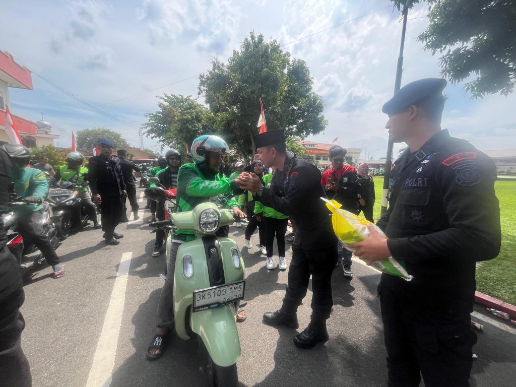Dalam semangat persaudaraan, Satuan Brimob Polda Sumut bersama Polsek Medan Baru dan unsur TNI menggelar doa bersama dengan komunitas ojek online (ojol) Sumatera Utara, sekaligus membagikan sembako berupa 5 ton beras atau 1.000 karung kepada para pengendara ojol.