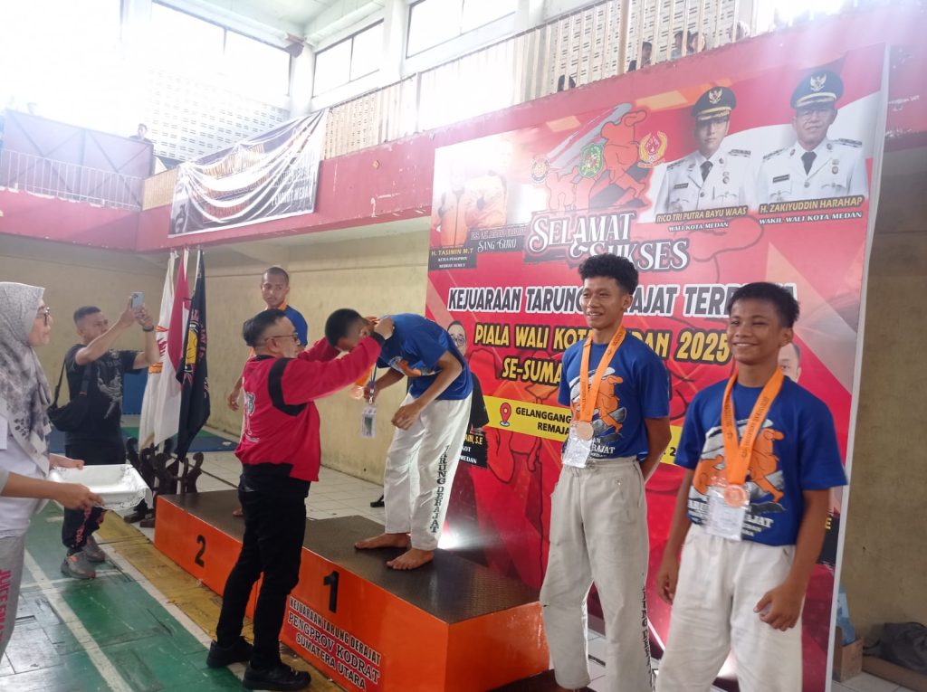 Medan, (Infokasus24.com) – Atlet Tarung Derajat Kota Medan berhasil menyabet juara umum pada kejuaraan Tarung Derajat Piala Walikota Medan se-Sumatera Utara tahun 2025 yang digelar di gedung Gelanggang Remaja Jalan Sutomo Medan, Minggu (07/09/2025).