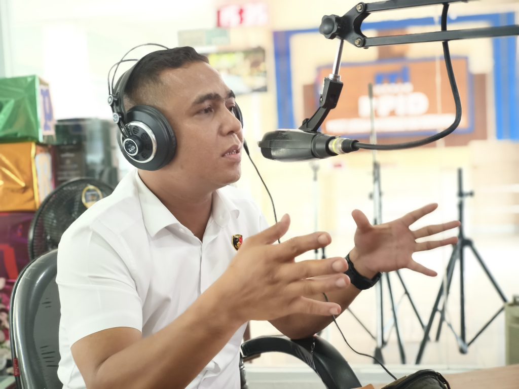 Foto : Kanit Reskrim Polsek Medan Tuntungan, Iptu O. Siallagan, S.H., menjadi narasumber pada program Dialog Interaktif Hallo Polisi RRI Medan.