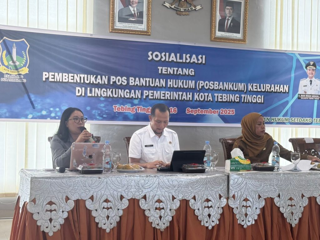 Tebing Tinggi, (Infokasus24.com) – Pemerintah Kota Tebing Tinggi inisiasi pelaksanaan Sosialisasi Pembentukan Posbankum yang berlangsung di Aula Balai Kota Tebing Tinggi, Selasa (16/9/2025).