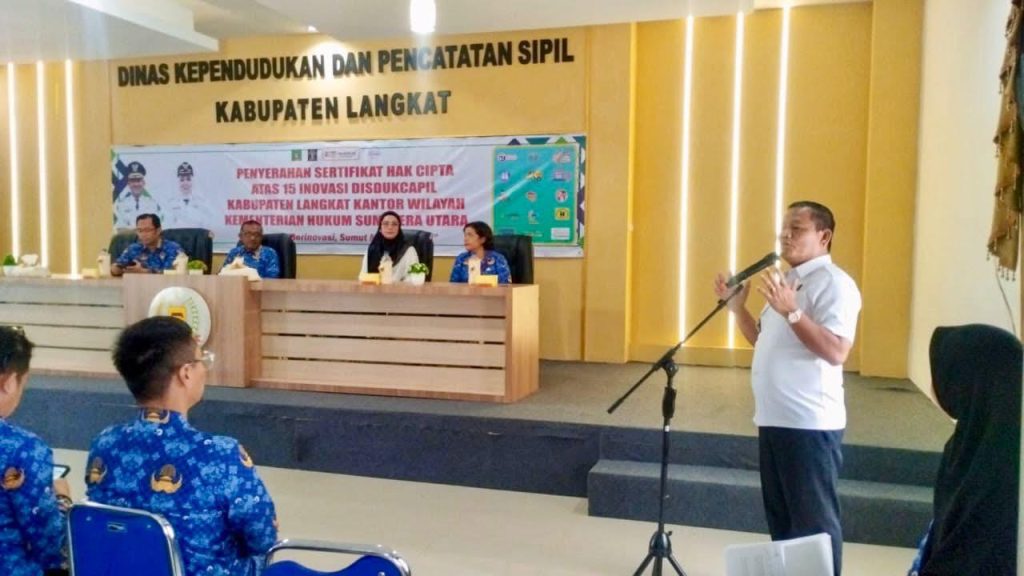 Kegiatan berlangsung di Aula Kantor Disdukcapil Langkat ini merupakan tindak lanjut dari Undang-Undang Nomor 28 Tahun 2014 tentang Hak Cipta dalam rangka memberikan perlindungan hukum bagi karya cipta di bidang ilmu pengetahuan, seni, dan sastra.