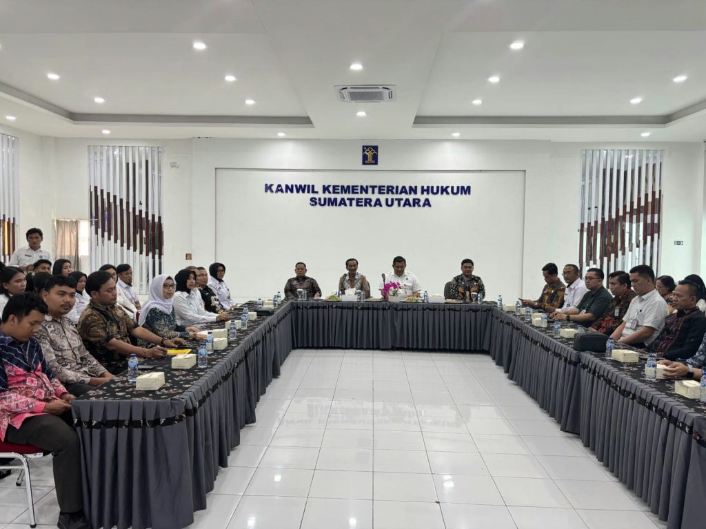 Medan, (Infokasus24.ccom) – Sekretaris Menteri Koordinator Bidang Hukum, Hak Asasi Manusia, Imigrasi dan Pemasyarakatan, R. Andika Dwi Prasetya, Bc.IP, S.Pd memimpin sinkronisasi dan koordinasi likuidasi Sumber Daya Manusia (SDM), anggaran, dan Barang Milik Negara (BMN) pasca transformasi Kementerian Hukum dan HAM di Aula Kanwil Hukum Sumatera Utara, Kamis (25/09/25).