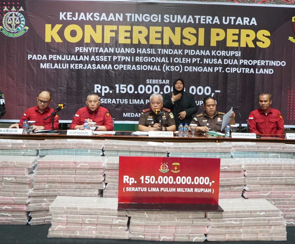 MEDAN, (infokasus24.com)- Kejaksaan Tinggi Sumatera Utara memberikan keterangan Pers Sebagai upaya penyelamatan dan pemulihan keuangan negara dari penanganan tindak pidana korupsi Perkara Penjualan Aset PTPN I Regional I oleh PT Nusa Dua Propertindo melalui Kerjasama Operasional (KSO) dengan PT.Ciputra Land.