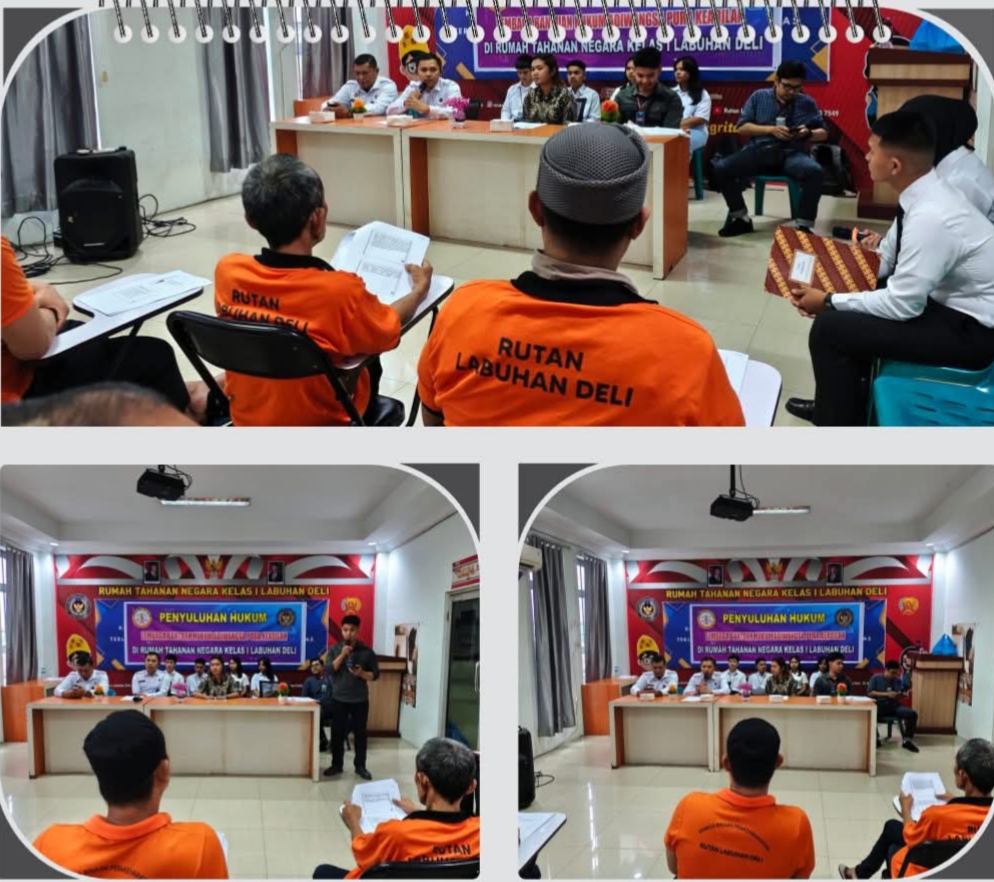Labuhan Deli, (Infokasus24.com) – Meningkatkan pemahaman hukum serta memberikan akses terhadap keadilan bagi warga binaan pemasyarakatan (WBP), Rumah Tahanan Negara (Rutan) Kelas I Labuhan Deli bekerja sama dengan Lembaga Bantuan Hukum (LBH) Adiwangsa Pura Keadilan menggelar Penyuluhan dan Bantuan Hukum Gratis bagi warga binaan, Kamis (23/10/2025).
