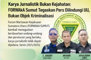 Forwaka Sumut menyatakan bahwa karya jurnalistik secara konstitusional bukan merupakan tindak pidana, meski saat ini telah berlaku Kitab Undang-Undang Hukum Pidana (KUHP) baru berdasarkan UU Nomor 1 Tahun 2023.